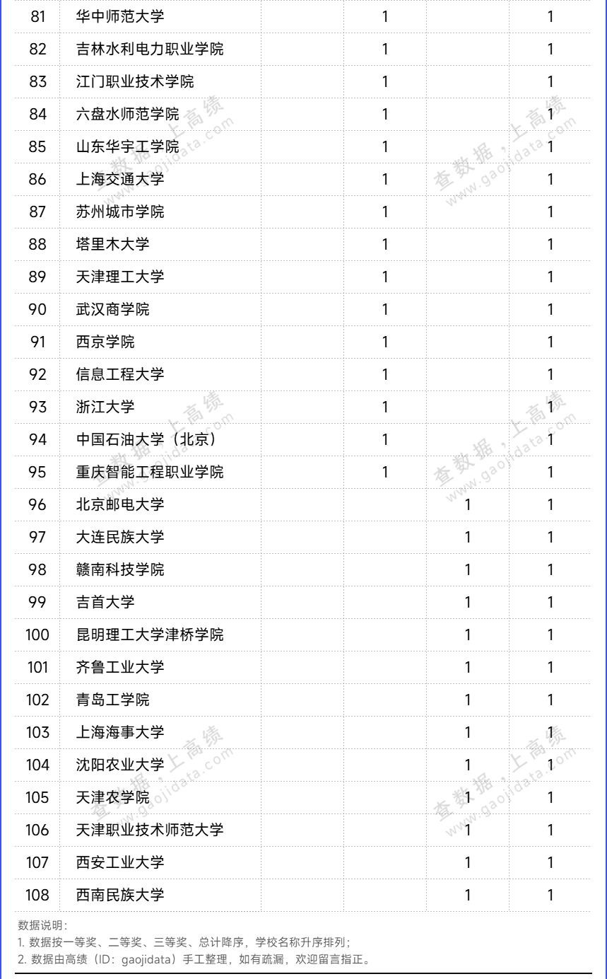 具体各高校获奖项目统计如下: