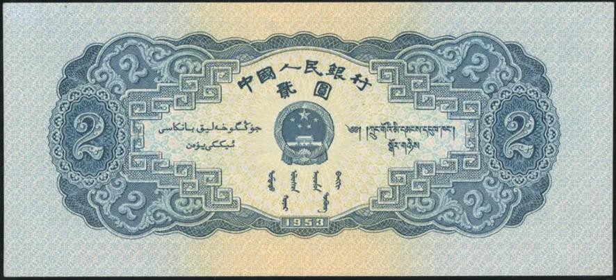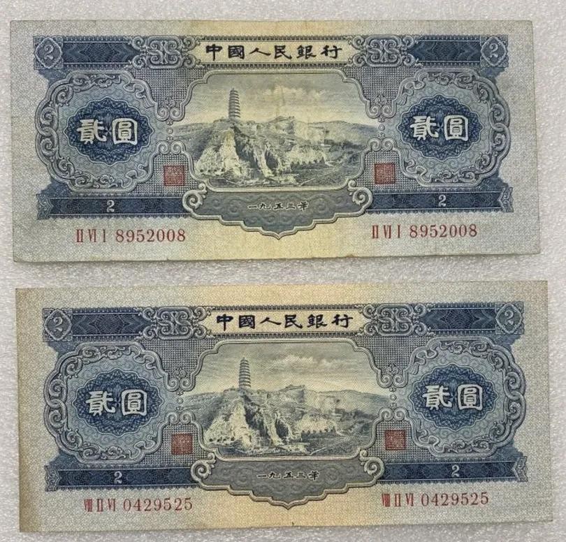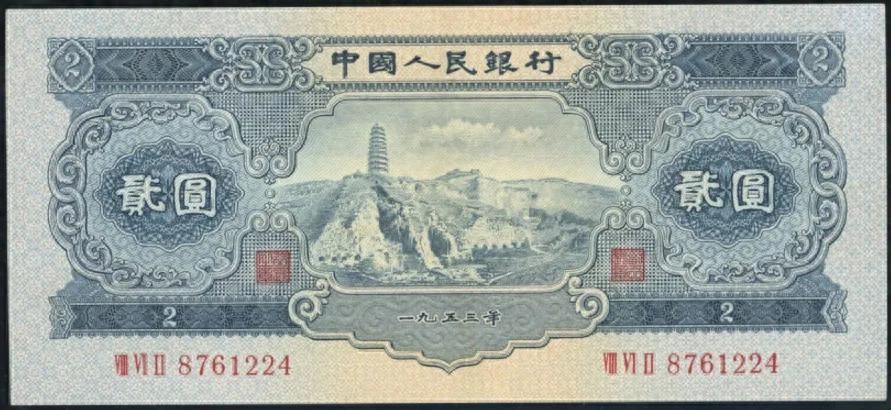那你知道新中国第一张2元纸币是那一张吗?下面这张就是。