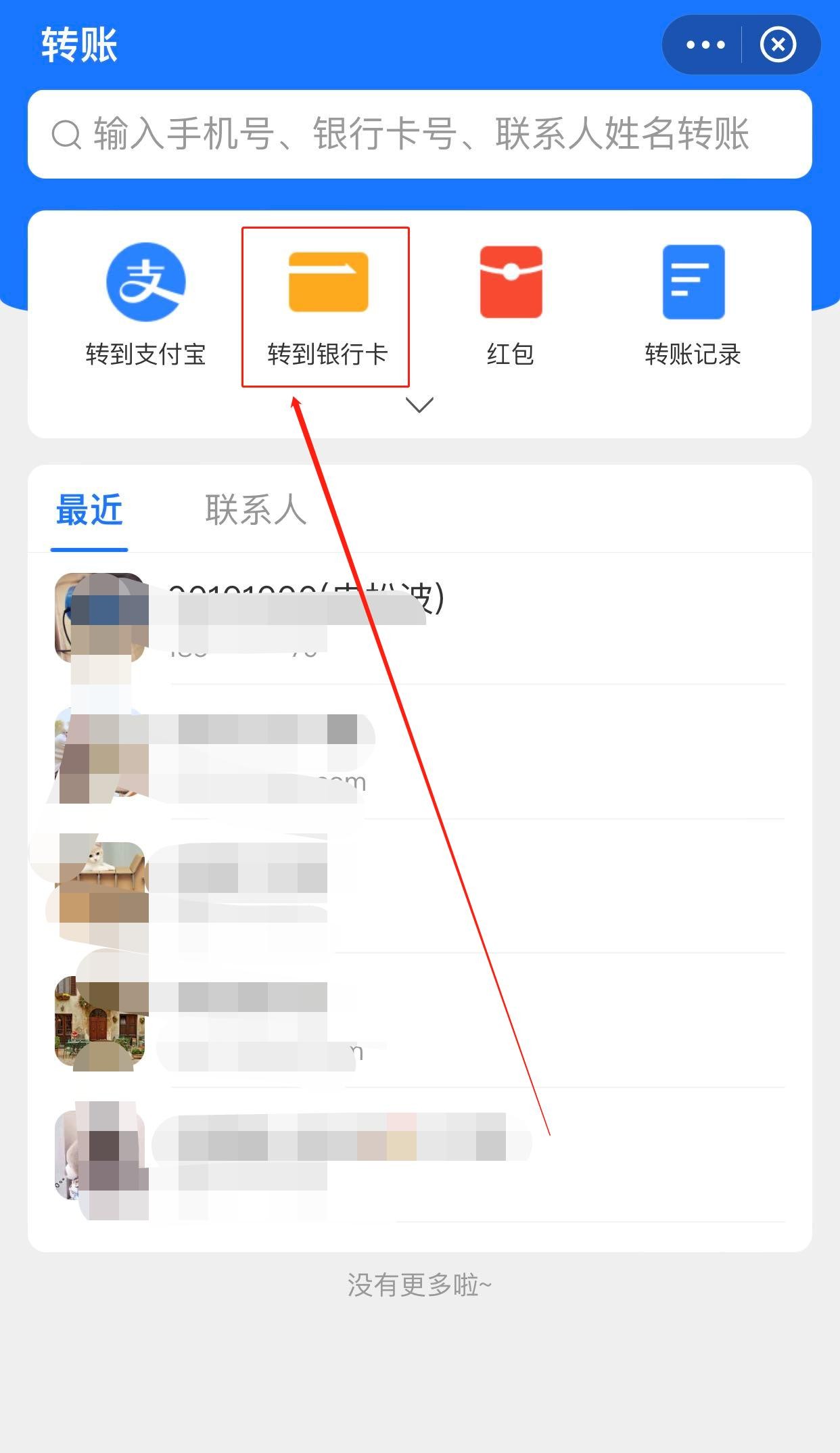 在界面的最上方点击“转到银行卡”。