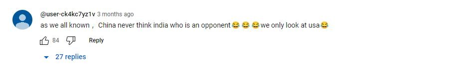 众所周知,中国从来没有把印度视为对手,我们看向的只有美国。