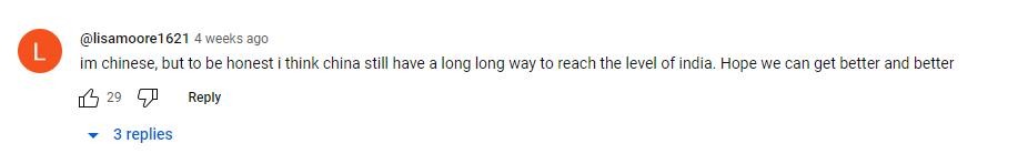 我是中国人,但说实话,我认为中国要达到印度的水平还有很长的路要走。希望我们能越来越好
