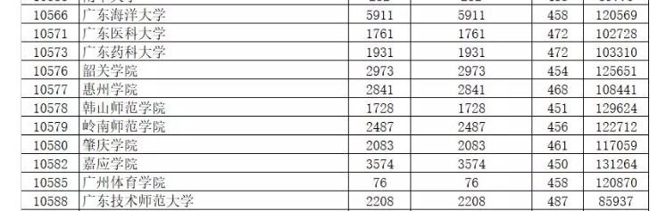 我们可以看到广东理科的招最低招生分数是429,分数极低。我们可以看一下2019年广东几所公办高校的录取理科分数线,就可以知道南京森林警察学院的性价比有多高。
