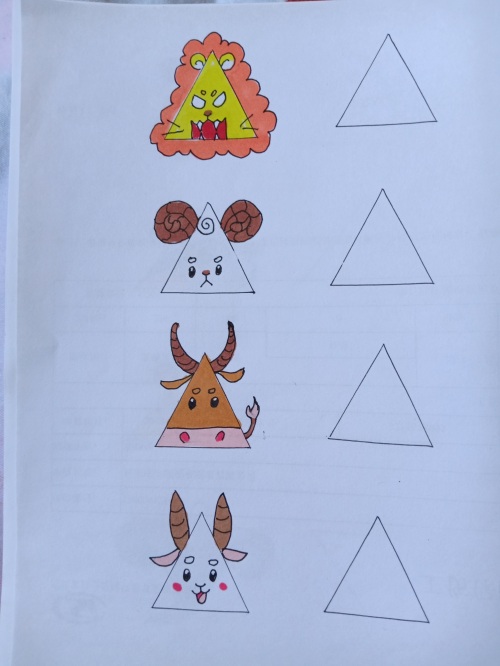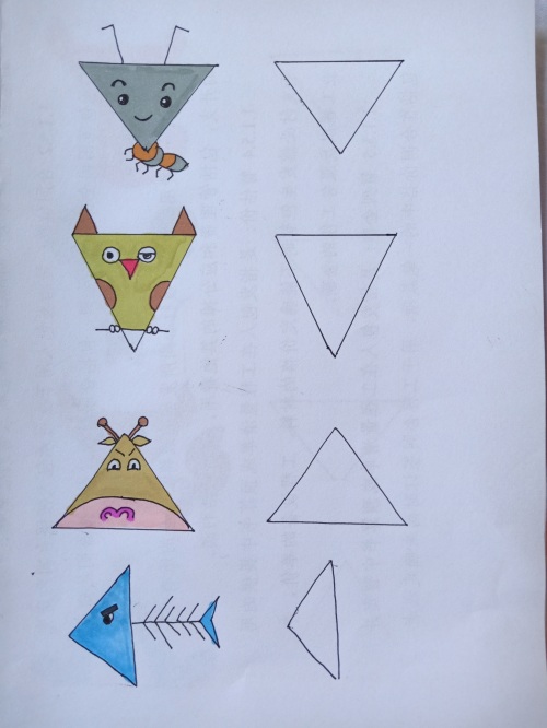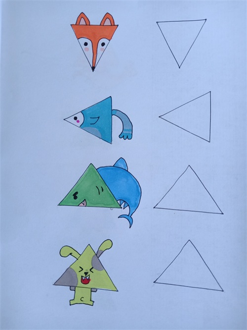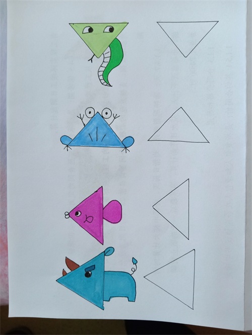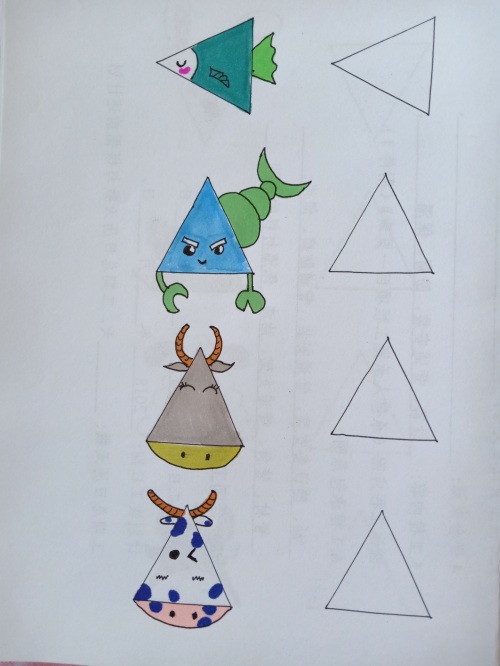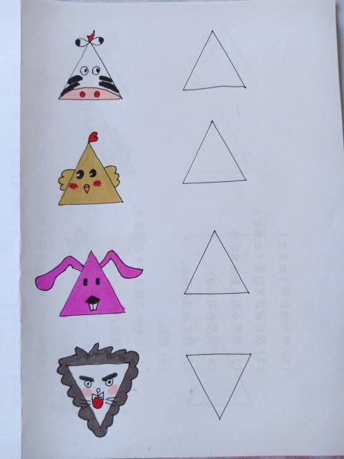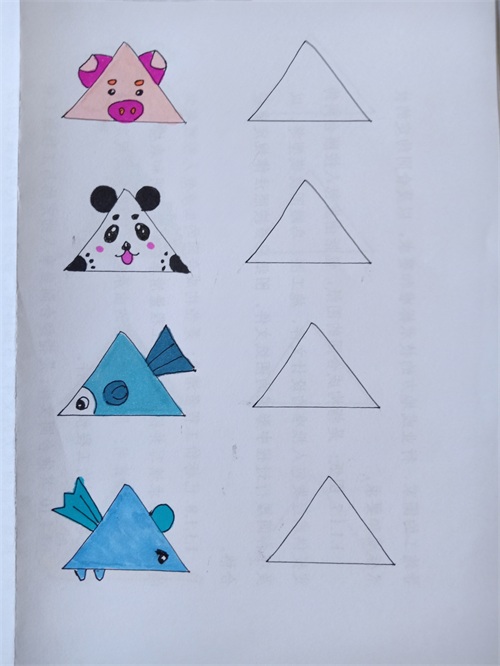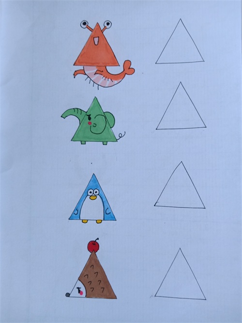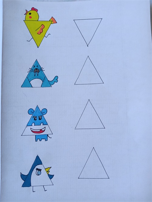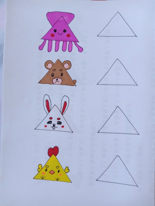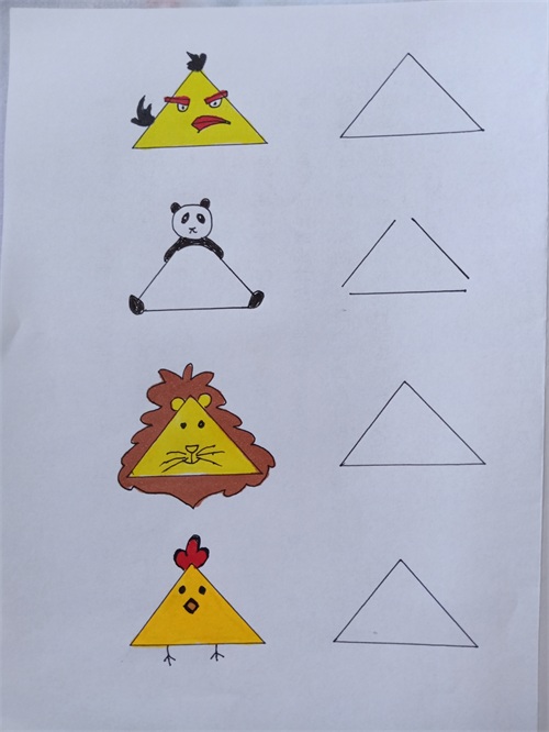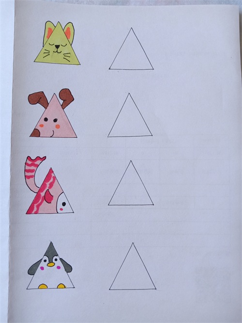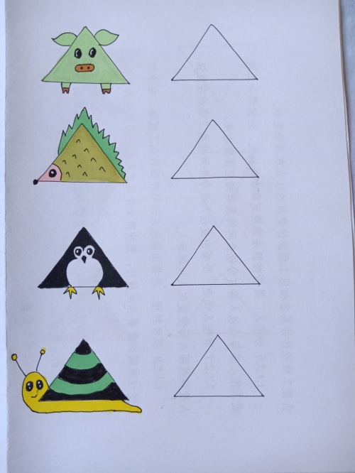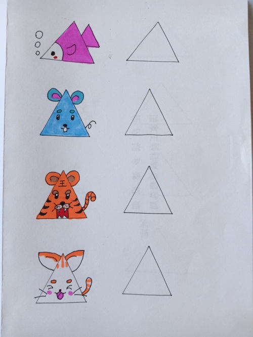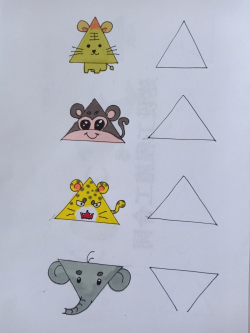 我把网上的关于三角形的简笔画都临摹了一遍,并都留出了临摹空框。