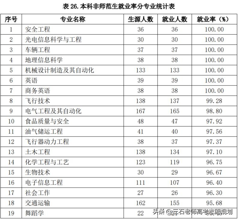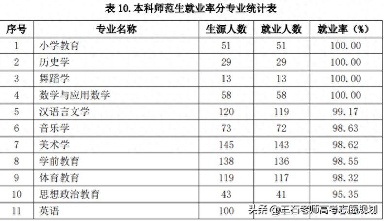 从表中可知,最差的英语专业就业率也到94%了,而且教师的工作是越老越吃香的。像数学、历史、汉语言几乎都是100%就业。